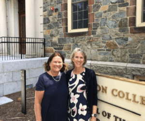 We had an enjoyable meeting recently with both Jackie and Kathy at Boston College and learned much about these two Fenwick alumnae. It is clear that both women are strong believers in education. Kathy is a a triple eagle from BC (Bachelor’s degree in education, Master’s in educational consulting, and a Ph.D. in special education), and Jackie earned a Bachelor’s degree from the College of Holy Cross and a Master’s of Divinity degree from the Weston Jesuit School of Theology. Receiving a Catholic school education was important to both women. Jackie attended St. John’s in Peabody for her elementary school, and Kathy attended St. Mary’s in Danvers. According to Kathy, “The importance of Catholic school education was embedded in my family.”